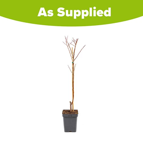 Supplied as an established tree in a  5 litre pot, 90-110cm tall and growing to a height and spread of 2m (6?) in 10 years, dependent on pruning.
