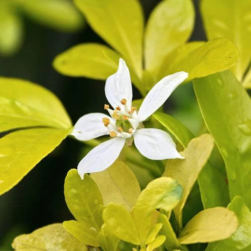 A low-maintenance, drought-resistant and slow-growing hardy shrub, ‘Sundance’ forms a dome of glossy, bright yellow-green foliage and in spring produces small clusters of white, star-shaped flowers that have a delightful citrus-like fragrance ? hence its common name of ‘Mexican Orange Blossom’.