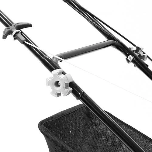 A two-year manufacturer?s warranty provides reassurance when it comes to reliability and durability; while a fold-down handlebar and collapsible fabric grassbag mean you?ll have no trouble finding a spot for the mower in your storage area.