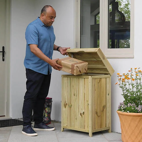The Keep Safe Parcel Store is designed with security in mind. When a parcel is delivered and the lid is lifted, the parcel can be placed on the hinged platform. Once the lid is closed, the parcel drops into the secure space at the base of the store, out of sight and ready for collection, parcels remain irretrievable when the lid is next lifted.
