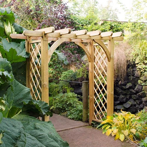 The impressive Large Ultima Pergola Arch will create a stunning garden entrance or walk way. Contemporary straight lines are complimented by classic arched supports and lattice panels. The size of the arch makes it perfect for larger gardens and when covered with climbing plants it will become a real feature in your garden.