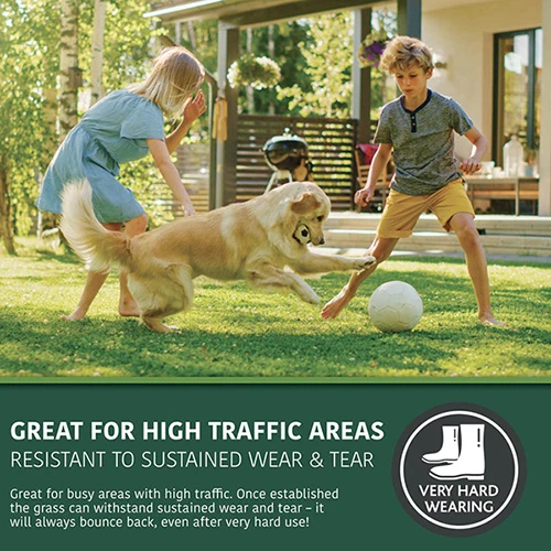 Extremely hard wearing, a lawn grown with this mix will stand up to life as a playground for your family and pets, or as a venue for outdoor parties and yet will remain looking great.